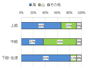 新潟県のイメージ、「海」が上越(66%)、下越・佐渡(81%)!一方、中越は「山(55%)」!