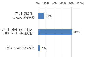 「アキレス腱をつったことがある」が14%!「アキレス腱じゃないけど、足をつったことはある」は81%!